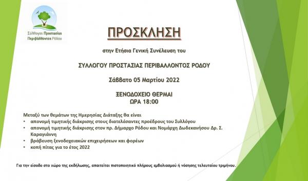 Το ΔΣ του Συλλόγου μας έχει την τιμή να σας προσκαλέσει στην ετήσια Γενική Συνέλευση και κοπή πίτας του Συλλόγου που θα γίνει την 05.03.2022, ημέρα Σάββατο, στο ...